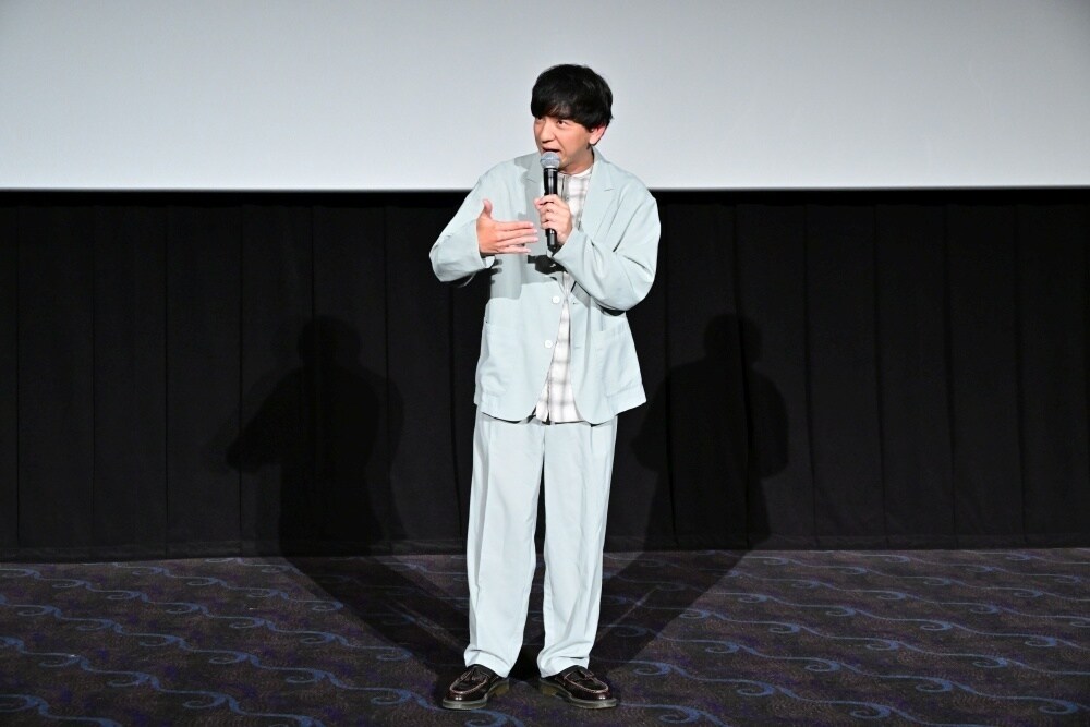 公開に先駆けて開催された特別試写イベントに、お笑いトリオ・パンサーの向井慧さんがゲストとして登壇。コメディクラブで一人でステージに立つ本作の主人公にちなんで、パンサーのメンバー・菅良太郎さんと尾形貴弘さんを引き連れることなく、ピンで登壇した向井さん。「いつもは右に声の大きいバカ(尾形)と左に髭(菅)がいます。なんだかんだ言って心強い二人でもあるので、今日はちょっと寂しいなと思いつつ、一人で頑張ろうと思います!」と意気込みます。